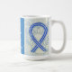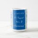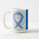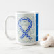 ALS (Amyotrophic Lateral Sclerosis) uses a blue and white striped awareness ribbon to show support for its awareness. This custom mug features blue awareness ribbon guardian angel art paintings with the message "I Hope and Support ALS Awareness!" The custom blue and white striped awareness guardian angel ribbon art picture coffee cups or mugs can be customised with personalised messages to make great cause mugs for awareness fundraisers, awareness cup gifts, or other special events or cause support occasions. Make your own customised words for a personal message of hope and support to share!