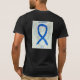 ALS (Amyotrophic Lateral Sclerosis) awareness uses a blue ribbon for its cause awareness. The shirt art features a blue awareness ribbon angel painting. The awareness angel t-shirt message notes "ALS Awareness". There is a large image on the back of the shirt and a smaller picture on the front of the shirt. The blue awareness angel ribbon art apparel can be customised with personalised messages to make great cause event clothing for fundraiser shirts, group team walk shirts, awareness tshirt gifts, or other special cause events occasions for merchandise to help increase this cause's awareness in public for society's help in creating help & cause change.