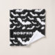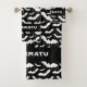 Bat Pattern Towel Set | Nu Goth Bathroom Decor. This alternative black and white gothic bat pattern towel set features a drippy insignia-style motif in a stark nu goth style. The simplified white bats on a black background add bold contrast. I designed this with gothic minimalism in mind, combining a clean silhouette with a strong visual impact.