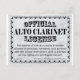 Official Alto Clarinet License. There are many activities involving various equipment, such as operating an automobile, aeroplane, etc., that require specialised training and licenses. Making music is something that usually requires training: lessons, practice, and rehearsals. Shouldn't it be required of the prospective musicians that they receive a license to operate the equipment, i.e., their musical instrument?