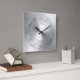 aluminum silver metal look wall clock, scratches and circles, industrial style