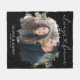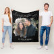 Elegant couple fleece blanket featuring a trendy black background, the saying 'always forever' that incorporates a heart centre, a photo of the happy couple, their names, and a significant date.