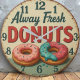 always fresh donuts sweet kitchen shop wall art, fun food timepiece, pastry lover gift, colorful donut design, bakery themed clock, retro sweets decor, sprinkle donut clock