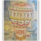 is featured on a hot air balloon in shades of orange, red, green, and yellow.