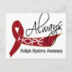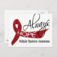 When it comes to a cure for Multiple Myeloma, we must Always Hope. Express this inspiring sentiment to those around you while sharing the important message of Multiple Myeloma awareness with Always Hope t-shirts, apparel, buttons, and gifts featuring fanciful text and a striking burgundy Multiple Myeloma awareness ribbon edged in 'gold'.