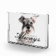 Cherish the wonderful memories forever with our custom pet memorial photo block. Our design features a full photo placeholder. Customize with your pet's name. "Always in our hearts" is displayed over the image.