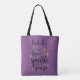 Always Leave A Little Sparkle Wherever You Go Typography Tote on purple tote. You can change the background colour and you can personalise with your own name or remove to leave just the quote. Perfect to celebrate a birthday or as a graduation gift.