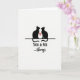This greeting card shows two black cat silhouettes facing each other on a white background, their bodies forming a close, gentle embrace. A single red heart sits between their faces, drawing your eye right to the sweet moment ❤️. The cats rest on a solid black horizontal line near the lower part of the design, which makes the scene feel simple and focused. Their tails curl slightly, adding a soft touch to the overall look. Below the line, the card reads “YOU & ME ...Always.” with “YOU & ME” in black, uppercase serif letters and “...Always” in a lighter, flowing script. The text sits centered near the bottom, keeping the message clear and easy to read 💌. It’s a warm, romantic design that feels perfect for a partner or a close friend, especially with a little chocolate on the side 🍫. Hope it helps you share your Valentine’s Day feelings in a kind, heartfelt way.
