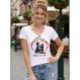 Designed for women who appreciate comfort with a touch of romance, this V-neck tee feels light, breathable, and easy to wear. The soft cotton fabric keeps things comfortable throughout the day, while the feminine neckline adds a flattering detail without feeling overdone.