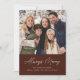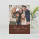 Simple holiday card featuring your family's photo at the top of the design. The phrase "Always Merry" is displayed in a handwritten white script with a dark brown background. The photo Christmas card reverses to display the year in white lettering with an additional photo.