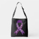 Alzheimers awareness crossbody bag, mahj bag, mahjong crossbody bag. Mahjong for Memory design with the purple Alzheimer's ribbon