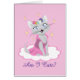 This adorable kitten is wearing a cute pink dress and a flower crown! Text reads: "Am I cute?"