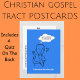 These are unique "Am I Going To Heaven?" Quiz gospel tracts with a colourful blue background and a cartoon of a man questioning with a thinking cloud in white above his head—keep or change the question [but research has shown this question to be very effective for Soul Winning/Evangelism. The QUIZ is on the back listing ten questions with the correct answer—simple bold black typography on a white background. The Christian Salvation message from the Bible | with Scripture verses from the KJV - King James Bible. Buy today and start evangelising with these small and handy postcard flyers. Discounts apply the more you order!