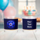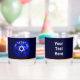 A light-coloured Star of David on a dark blue background. Hebrew text reads, "Am Yisrael Chai" (The people of Israel live!). Customise by adding your own text on the reverse side.