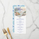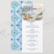 Elevate your seaside celebration with this Amalfi Coast Amore watercolor wedding menu. Featuring a romantic table setting with wine, cheese, and rustic bread on a wood table overlooking the turquoise sea, coastal hills, and a glowing sunset, this design captures the essence of Italian coastal charm. The elegant watercolor artwork pairs perfectly with handwriting-style script accents adding a stylish touch. The reverse side features the signature Mediterranean tile pattern, coordinating seamlessly with your full Amalfi Coast Amore invitation suite for a cohesive, romantic seaside wedding collection. Art by KL Stock