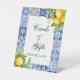 Welcome your guests in style with this charming Amalfi Coast Cards & Gifts Pedestal Sign. Perfect for a baby shower, this sign features a beautiful Mediterranean-inspired blue tile and lemon design, capturing the essence of the Italian coast. Display it on your gift table to guide guests with elegance and flair. Ideal for gender-neutral celebrations, it’s the perfect blend of beauty and functionality for your event decor.