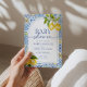 Inspired by the charm of the Amalfi Coast, this baby shower invitation features watercolor lemons, Mediterranean tiles, and elegant blue typography. A fresh, vibrant design with timeless coastal flair.