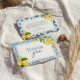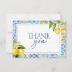 Inspired by the charm of the Amalfi Coast, this thank you card features watercolor lemons, Mediterranean tile patterns, and elegant blue typography. A beautiful way to send love and gratitude after your celebration.