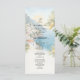 This design features a stunning watercolor illustration of a seaside village framed by vibrant lemon trees overlooking the sparkling blue sea. The soft pastel colours and refined typography create a timeless and sophisticated look perfect for destination weddings.