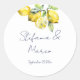 Amalfi Positano Vietri blue Majolica tiles lemons wedding template stickers bride and groom names, Mediterranean themed bunch of citrus with lemons wedding stickers