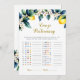 Bring the laughs with this Amalfi Lemon Emoji Pictionary Baby Shower Game Card! Guests guess baby-related phrases, items, or books from clever emoji clues, all beautifully framed by a watercolor lemon wreath of bright yellow citrus, green/blue leaves, white blossoms, and gold accents — channeling the joyful energy of Positano terraces and Mediterranean Italian style. Includes answer key for easy hosting!