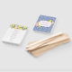 Combine your menu with a hand fan with this on-trend design featuring handpainted lemons and a blue and white vintage tile background.