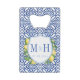 This classic design features a simple and elegant couples crest monogram surrounded by watercolor lemons, leaves and blossoms, with blue and white vintage tile print background.