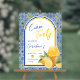 A 40th birthday party acrylic sign with an Italian theme featuring a chic arch frame and Mediterranean tile patterns in blue, white, and yellow with citrus lemon gelato illustrations, reminding you of a summer holiday in southern Italy. Feel free to message me if you need any help with customisation.