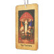 A rustic scene with a cute gnome couple sitting and drinking tea under a red and white Fly Agaric (Amanita muscaria) mushroom in a dark oak forest. Everything is superimposed on an old paper background image. Customise by adding your own text.