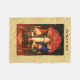 A rustic scene with a cute gnome couple sitting and drinking tea under a red and white Fly Agaric (Amanita muscaria) mushroom in a dark oak forest. Everything is superimposed on an old paper background image. Customise by adding your own text.