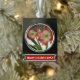 Amaryllis in Snow Red Holiday Winter Floral Silver Plated Banner Ornament