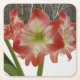 Amaryllis in Snow Red Holiday Winter Floral Square Paper Coaster
