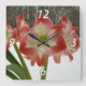 Amaryllis in Snow Red Holiday Winter Floral Square Wall Clock