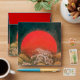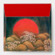 Elegant ,colourful seascape with red sun, sea waves in vibrant black,brown,white colours re-elaborated from an antique japanese miniature. Amaterasu is a part of the Japanese myth cycle and also a major deity of the Shinto religion. She is the goddess of the sun, but also of the universe. The name Amaterasu derived from Amateru meaning "shining in heaven." The meaning of her whole name, Amaterasu-ōmikami, is "the great August kami (god) who shines in the heaven".For Amaterasu is also credited with inventing the cultivation of rice and wheat, the use of silkworms and weaving with the loom.