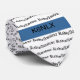 A classy way to display your Amateur Radio call sign. The tie is white with a pattern of arched black letter text that reads Amateur Radio. Near the bottom of the tie is a blue bar with the customisable text of your radio call sign in black.