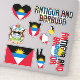 Amazing Antigua and Barbuda Shapes National Symbols Sticker. Two country name stickers, one in the colours of the national flag and the other one covered in the Word Cloud with the words "Antigua and Barbuda" written in the different alphabet forms and/or languages and fonts. All words are coloured with the national colours used on the flag of Antigua and Barbuda, Beautiful heart, shield (escutcheon) and map filled with the representation of the Antigua and Barbuda national flag. Hand sticker with the two fingers up, representing victory filled with the colours of the Antigua and Barbuda national flag. The last two stickers are national flag of the Antigua and Barbuda and the national Coat of Arms. This is the great set of superb stickers with most of them unique and hand drawn. All stickers are fully customisable using "Customise it!" feature. You can mix and match them as you wish. If you want multiple hearts but no shield fire away. Maybe you want only hand with the victory sign? Easy, remove everything else and make multiple copies of the hand. These grand stickers are the perfect sticky gift for any occasion. Fire away and stick them where your heart desire! © 2022 CountriesOfTheWorld
