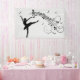 Simple black silhouette of a ballet dancer with fancy music bar and notes.