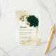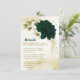 Beautiful emerald green ivory white and gold flowers with gold leaves botanical details enclosure card.