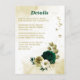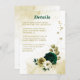 Beautiful emerald green ivory white and gold flowers with gold leaves botanical details enclosure card.