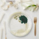 Beautiful emerald green ivory white and gold flowers with gold leaves botanical wedding paper plates.