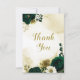 Beautiful emerald green ivory white and gold flowers with gold leaves botanical thank you card.