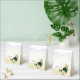 Beautiful emerald green ivory white and gold flowers with gold leaves botanical favour box.