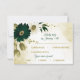 Beautiful emerald green ivory white and gold flowers with gold leaves botanical response card with meal choice.