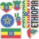 Amazing Ethiopia Shapes National Symbols Sticker. Two country name stickers, one in the colours of the national flag and the other one covered in the Word Cloud with the words "Ethiopia" written in the different alphabet forms and/or languages and fonts. All words are coloured with the national colours used on the flag of Ethiopia, Beautiful heart, shield (escutcheon) and map filled with the representation of the Ethiopia national flag. Hand sticker with the two fingers up, representing victory filled with the colours of the Ethiopia national flag. The last two stickers are national flag of the Ethiopia and the national Coat of Arms. This is the great set of superb stickers with most of them unique and hand drawn. All stickers are fully customisable using "Customise it!" feature. You can mix and match them as you wish. If you want multiple hearts but no shield fire away. Maybe you want only hand with the victory sign? Easy, remove everything else and make multiple copies of the hand. These grand stickers are the perfect sticky gift for any occasion. Fire away and stick them where your heart desire! © 2022 CountriesOfTheWorld