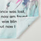 Christian tapestry depicts a beautiful floral watercolor with pink flowers on a blue background. It features the beloved Christian Hymn, "Amazing Grace, how sweet the sound that saved a wretch like me! I once was lost, but now am found, was blind, but now I see."