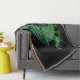 A quality printed throw has its advantages. This is a much finer weave throw than its loopier cousins, and though lighter, it is worth the investment for custom room accessorizing. The back is much prettier than the typical brown, and the fringe on the long sides very vivid, the selvage nicely done. Before photographing, I washed the throw in cold water, delicate, with a thicker woven throw the same size. On tumble dry low, this throw was dry in half the time as the other. This is a very practical quality if you use throws for furniture covers or to wrap up in frequently. The sleekness of the fabric makes it a great layer for accenting or protecting without the feeling of sitting on too much stuff. Perfect for napping or when you feel a light chill coming on. The color printing is beautiful and on this fabric, matched the design and color of my Photoshop image. This is an advantage for blending room fabrics and colors. The fringe on the short sides prints the colors from the design image and therefore varies from the side fringe. I streaked a white fractal line through the plaid pattern to give the illusion of weaving. This printed as crisp as an illusory thread, and put some white in the short side fringe, showing another advantage of print vs loomed- for artistic purposes, line lines, detail, and color integrity can be planned and preserved. My loomed throws have color limitations and more of a needlepoint texture. Print throws reproduce an exact image. The throw felt a little stiff straight out of the package, but this went away in the first delicate wash. Of course I searched the wash water for ink or bleeding and there was none.