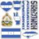 Amazing Honduras Shapes National Symbols Sticker. Two country name stickers, one in the colours of the national flag and the other one covered in the Word Cloud with the words "Honduras" written in the different alphabet forms and/or languages and fonts. All words are coloured with the national colours used on the flag of Honduras, Beautiful heart, shield (escutcheon) and map filled with the representation of the Honduras national flag. Hand sticker with the two fingers up, representing victory filled with the colours of the Honduras national flag. The last two stickers are national flag of the Honduras and the national Coat of Arms. This is the great set of superb stickers with most of them unique and hand drawn. All stickers are fully customisable using "Customise it!" feature. You can mix and match them as you wish. If you want multiple hearts but no shield fire away. Maybe you want only hand with the victory sign? Easy, remove everything else and make multiple copies of the hand. These grand stickers are the perfect sticky gift for any occasion. Fire away and stick them where your heart desire! © 2022 CountriesOfTheWorld