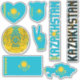 Amazing Kazakhstan Shapes National Symbols Sticker. Two country name stickers, one in the colours of the national flag and the other one covered in the Word Cloud with the words "Kazakhstan" written in the different alphabet forms and/or languages and fonts. All words are coloured with the national colours used on the flag of Kazakhstan, Beautiful heart, shield (escutcheon) and map filled with the representation of the Kazakhstan national flag. Hand sticker with the two fingers up, representing victory filled with the colours of the Kazakhstan national flag. The last two stickers are national flag of the Kazakhstan and the national Coat of Arms. This is the great set of superb stickers with most of them unique and hand drawn. All stickers are fully customisable using "Customise it!" feature. You can mix and match them as you wish. If you want multiple hearts but no shield fire away. Maybe you want only hand with the victory sign? Easy, remove everything else and make multiple copies of the hand. These grand stickers are the perfect sticky gift for any occasion. Fire away and stick them where your heart desire! © CountriesOfTheWorld