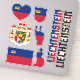 Amazing Liechtenstein Shapes National Symbols Sticker. Two country name stickers, one in the colours of the national flag and the other one covered in the Word Cloud with the words "Liechtenstein" written in the different alphabet forms and/or languages and fonts. All words are coloured with the national colours used on the flag of Liechtenstein, Beautiful heart, shield (escutcheon) and map filled with the representation of the Liechtenstein national flag. Hand sticker with the two fingers up, representing victory filled with the colours of the Liechtenstein national flag. The last two stickers are national flag of the Liechtenstein and the national Coat of Arms. This is the great set of superb stickers with most of them unique and hand drawn. All stickers are fully customisable using "Customise it!" feature. You can mix and match them as you wish. If you want multiple hearts but no shield fire away. Maybe you want only hand with the victory sign? Easy, remove everything else and make multiple copies of the hand. These grand stickers are the perfect sticky gift for any occasion. Fire away and stick them where your heart desire! © 2022 CountriesOfTheWorld
