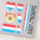 Amazing Luxembourg Shapes National Symbols Sticker. Two country name stickers, one in the colours of the national flag and the other one covered in the Word Cloud with the words "Luxembourg" written in the different alphabet forms and/or languages and fonts. All words are coloured with the national colours used on the flag of Luxembourg, Beautiful heart, shield (escutcheon) and map filled with the representation of the Luxembourg national flag. Hand sticker with the two fingers up, representing victory filled with the colours of the Luxembourg national flag. The last two stickers are national flag of the Luxembourg and the national Coat of Arms. This is the great set of superb stickers with most of them unique and hand drawn. All stickers are fully customisable using "Customise it!" feature. You can mix and match them as you wish. If you want multiple hearts but no shield fire away. Maybe you want only hand with the victory sign? Easy, remove everything else and make multiple copies of the hand. These grand stickers are the perfect sticky gift for any occasion. Fire away and stick them where your heart desire! © 2022 CountriesOfTheWorld
